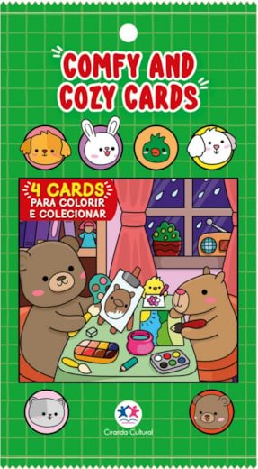 Comfy and Cozy com 4 cards colecionáveis para colorir